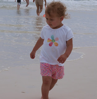 Since the weather was so unpredictable we were not planning on going to the beach that day, therefore we were not prepared with the appropriate wardrobe. She didn't seem to mind, though. She also didn't seem to mind getting her feet dirty in the sand.......but when she fell down, she refused to put her hands down to help herself up, as she can't stand having her hands dirty.