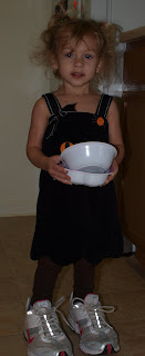 As many of you know, our adorable daughter is quite the little clotheshorse. It is not uncommon to go in to wake her from a nap to find that she is already awake and rummaging through her closet mixing and matching an array of different outfits. On this particular day she was wearing brown leggings, a corduroy cat jumper, and wanted to put on my tennis shoes as soon as she could get her hands on them. She then proceeded to help me unload the dishwasher while wearing them and didn't trip once!