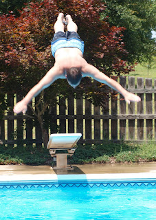 Grammy Anne and Pappy Jim are kind enough to let us come over and swim in their pool. Here are some photos I took at the end of June. Could I have waited any longer to post them?! Good grief!